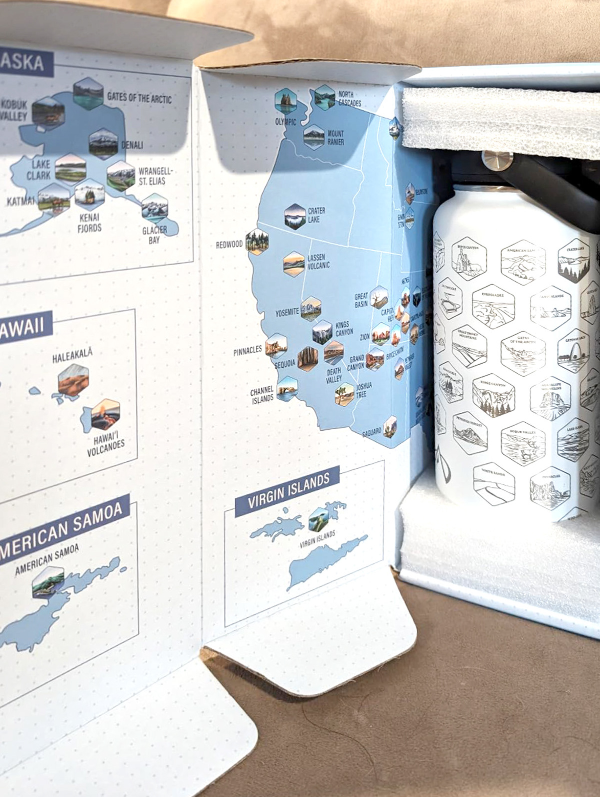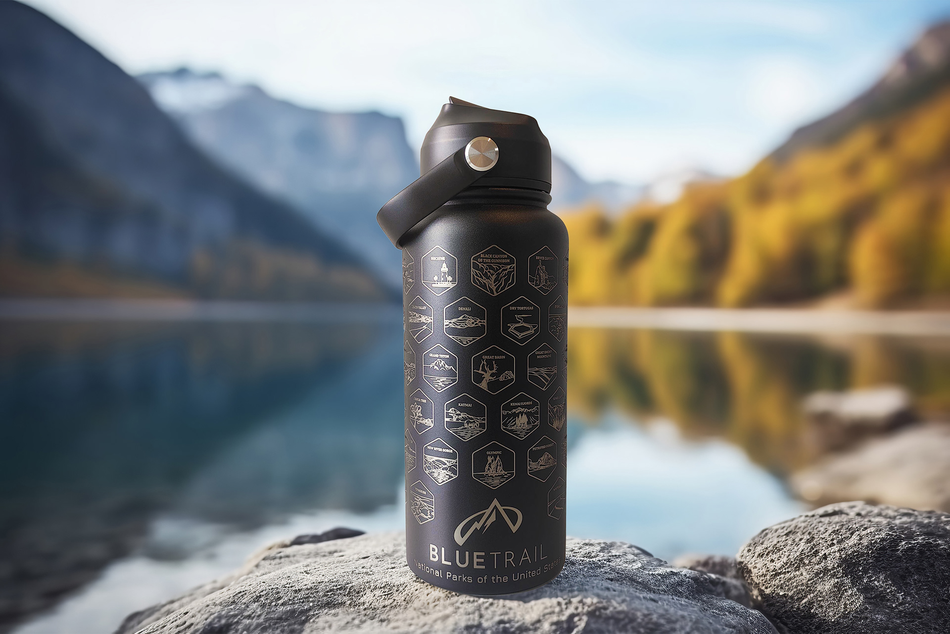 WATER BOTTLE WITH STICKERS: Travel with a masterpiece, as each water bottle boasts a unique laser engraving of all 63 national parks, turning your hydration into a canvas of natural wonders and inspiring exploration.