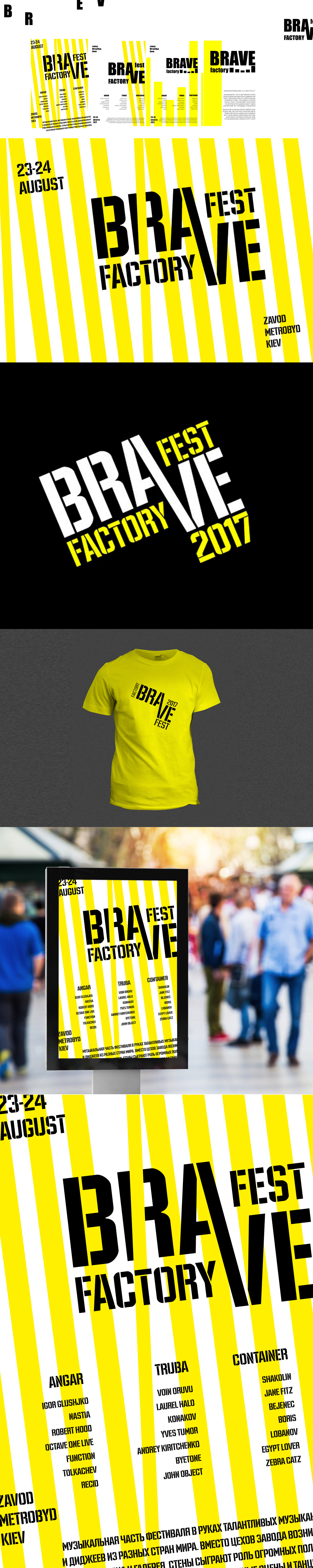 I chose the Kyiv Music Festival Brave Factory Fest and created a new logo and identity. I chose the yellow-black color as it seems to me these colors especially reflect the youth musical movement. I also created items with a corporate identity that can fit the festival